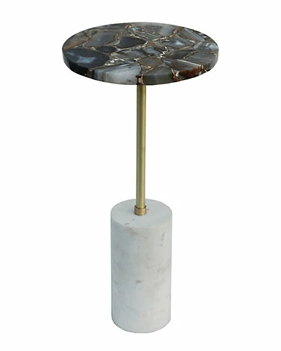 - Design details: With a dynamic blend of natural elements, the Black Agate and Brass Side Table with Cylindrical Marble Base offers a robust look that complements any modern home or office. The variegated black agate offers a unique look that contrasts beautifully with the sleek brass stand and rich white marble. Add this piece to a modern office, sophisticated living room, or chic master bedroom.