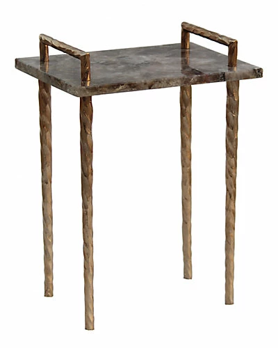 - Design details: Blending sleek agate stone with a rugged, hand-hammered metal frame, this table adds a robust look to any home or office. The warm metallic tones gleam against the glossy tabletop giving a handsome contrast of textures and finishes. This dynamic table makes a stunning addition to a rustic living room, vintage office, or lush sunroom where it adds a vibrant touch of a natural beauty.