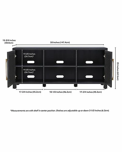 - A transitional design accommodates TVs up to 65″ for your entertaining space.