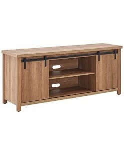 - Combine functionality and on-trend Parsons-style design with this modern TV stand. Its rich wood tone creates a warm neutral palette that will blend seamlessly into any color scheme, while its classic styling pairs perfectly with the existing design inspiration of your living room, den, or game room. This solid-backed stand features two sliding barn doors as well as cable management cut-outs to keep all your media wiring neatly organized.