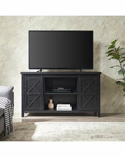 - Combine functionality and on-trend design with this sturdy TV stand. Its rich wood tone creates a warm neutral palette that will blend seamlessly into any color scheme, while its functional sliding barn doors add a touch of modern farmhouse whimsy. A must-have for living areas and entertainment spaces, this TV stand sets the stage for the big game, a movie marathon, or that season finale everyones been talking about.