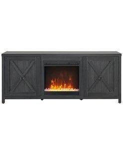 - Combine functionality and classic modern farmhouse design with this sturdy TV stand, featuring an inset electric fireplace. Its rich wood tone creates a warm neutral palette that will blend seamlessly into any color scheme, while its side cabinets allow for plenty of hidden storage. Stay warm and cozy while you take in the big game, a movie marathon, or that season finale everyones been talking about.