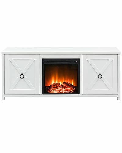- Combine functionality and classic modern farmhouse design with this sturdy TV stand, featuring an inset electric fireplace. Its rich wood tone creates a warm neutral palette that will blend seamlessly into any color scheme, while its side cabinets allow for plenty of hidden storage. Stay warm and cozy while you take in the big game, a movie marathon, or that season finale everyones been talking about.