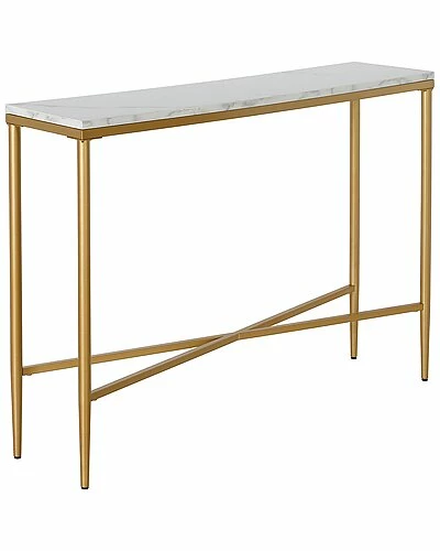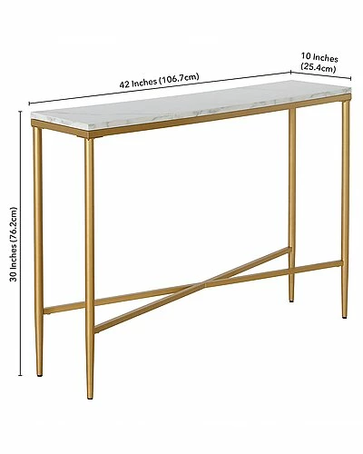 - With a durable steel frame and eye-catching faux marble tabletop, this console table makes a mid-century, yet modern, addition to any living area. The clean lines of the tabletop and frame are offset by the geometric crossbar, creating visual interest without weighing down the look. With a neutral metallic finish and streamlined design, it’s easy to incorporate into a variety of styles and spaces.