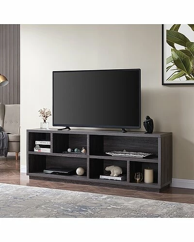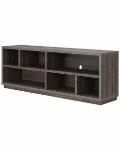 - A must-have for living areas and entertainment spaces, this TV stand sets the stage for the big game, a movie marathon, or that season finale everyones been talking about. Its rich wood tone creates a warm neutral palette that will blend seamlessly into any color scheme, while its classic transitional styling can pair perfectly with the existing design inspiration of your living room, den, or game room. This solid-backed stand also features cable management cut-outs to keep all your media wiring neatly organized.