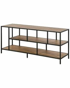 - A must-have for living areas and entertainment spaces, this TV stand sets the stage for the big game, a movie marathon, or that season finale everyones been talking about. Crafted from steel, it strikes a clean-lined silhouette and boasts on-trend rustic oak colored shelves for a look that blends with nearly any color palette.