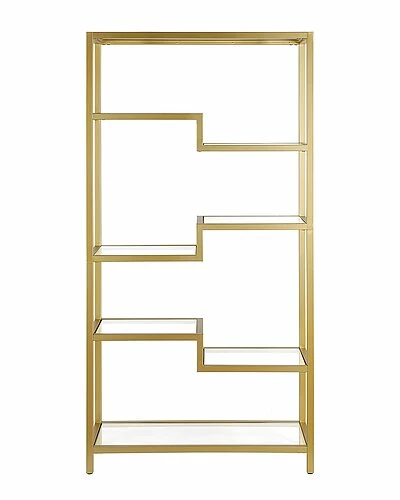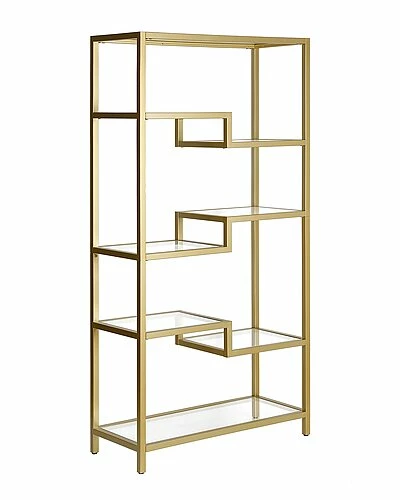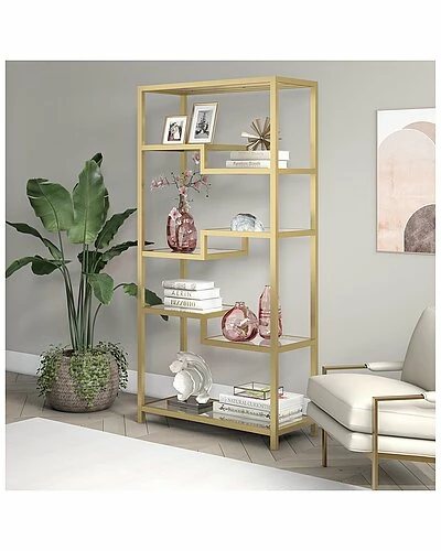 - A sturdy, metal bookcase standing at 68″ tall. The geometric, staggered shelving comes in 4-tiers which allows you optimal space to display your books, pictures frames, plants and more!