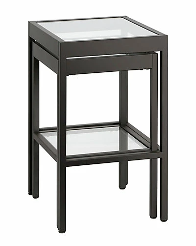- Minimalist, clean lines combine with sleek finishes in bronze, brass and nickel to make this the perfect nesting side table to go alongside your couch and coffee table. This nested set provides you plenty of space when needed while remaining compact and functional with each table featuring a bottom shelf.
