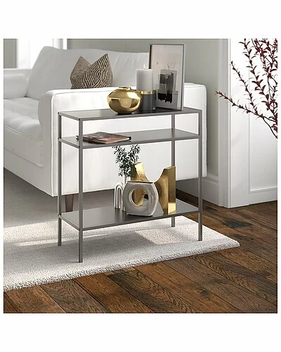 - Clean-lined industrial styling gets a contemporary update with the eye-catching matte white finish of this accent table. Its narrow silhouette makes this a versatile piece in small spaces. Use as a micro-console table or pair two as bedside tables.