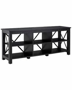 - Strong geometric lines set this modern farmhouse-inspired TV stand apart. Its X-shaped black metal accents offset the rich wood tone, creating a warm neutral color palette that will blend seamlessly into any design scheme. A must-have for living areas and entertainment spaces, this TV stand sets the stage for the big game, a movie marathon, or that season finale everyones been talking about.