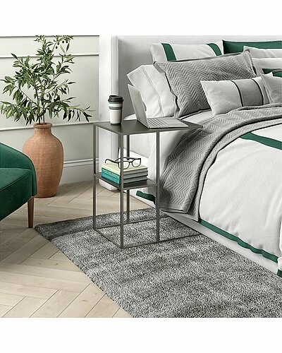 - A must-have for contemporary living areas or your modern bedroom, this side table is the perfect piece wherever you need a little extra storage. Crafted from steel, it strikes a clean-lined silhouette that pairs with your existing decor. It boasts a warm metallic finish and staggered metal shelves for a look that blends with nearly any color palette. The tables C-shaped design allows it to slip easily beneath sofas and chairs to bring your laptop, crafts, or reading materials to the comfiest spot in the house. Who says functional cant be fashionable?