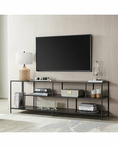 - A must-have for living areas and entertainment spaces, this TV stand sets the stage for the big game, a movie marathon, or that season finale everyones been talking about. Crafted from steel, it strikes a clean-lined silhouette and boasts a blackened bronze finish paired with matching metal shelves for a look that blends with nearly any color palette.