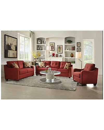 - Styled in Cleavon II collection, this red upholstery sofa set will bring you a modern and comfortable environment in the living room. Featuring sloped arms, loose seat and back cushions, and plastic wood grain legs.