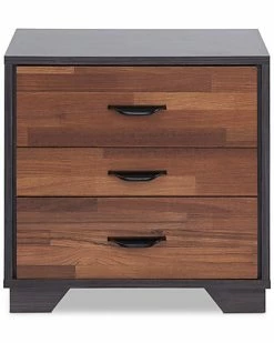 - Modern and functional, the Eloy nightstand with easy metal glider runner will be a great addition to your bedroom or living room. Using a combination of walnut and espresso, this space-saving nightstand gives you three full-size drawers, each perfect for storing the odds and ends out of sight. This collection will work perfect as either nightstand or end table.