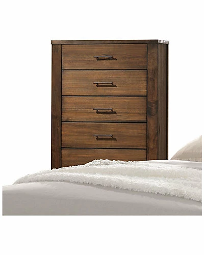 - The Merrilee chest features 5 drawers with oak finish. All drawers have English dovetail and antique brass metal hardware, offers you plentiful storage with spacious drawers.