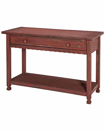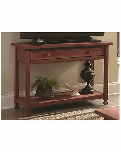- Country cottage collection will be a charming addition to your home’s decor. With its detailed dental work, square legs and distressed wood construction each piece will be a unique accent in your living space. Media.console table is a versatile piece for your entryway, television or even as a sideboard in your dining space..Distressed finish console table offers farmhouse style and functional design.Shelf is 36inw x 11ind x 15inh.Dental work and square, turned legs offer cottage style……..