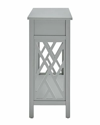 - Coventry is a fresh, clean collection that is versatilein any space. The square pattern, open-detailing on each side is airy and offers a unique look for your decor. Each piece offers additional storage or display space with a shelf, drawer, or pull out tray shelf. In both dove grey and white, these pieces are the perfect compliment to your space.