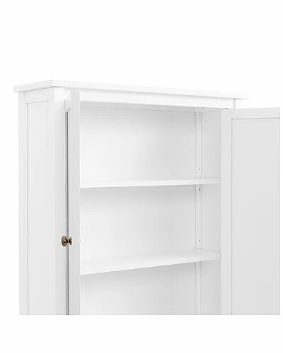 - This collection brings space saving storage to your bathroom. The classic design compliments almost any bathroom decor. Wood construction with a white, painted finish, these pieces are designed for both style and functionality. A perfect space saver for your bathroom; over the toilet space saver hutch allows you to tuck away your toiletries behind two doors. The cabinet design offers ample storage. The cabinet features two adjustable shelves that are ideal for storing items of different sizes. The 27inW wall mounted storage cabinet includes two adjustable interior shelves and a towel bar for maximizing space. Bath collection is moisture resistant.
