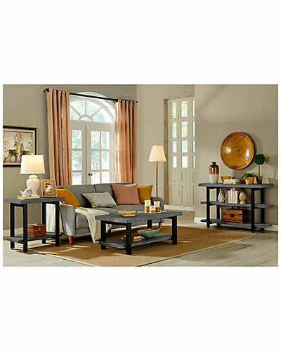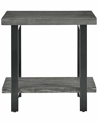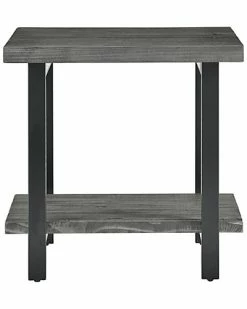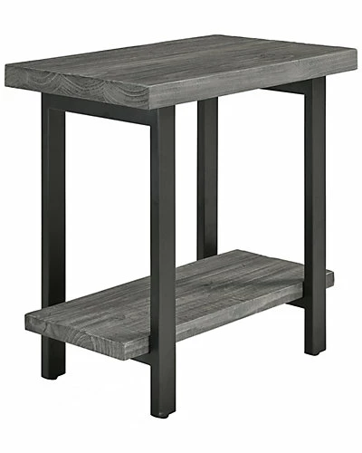 - Pomona 2-tier end table will add warmth to any decor. The Slate grey finish and design provide a stylish element to your room. Add your favorite lamp, books, magazines, or knick knack to complete your decorating style..Featuring exquisite workmanship of solid wood tops with metal legs that will last for years to come.Slate grey Finish provides a warm, yet elegant home feeling .2 shelves to display pictures, knick-knacks, and other accessories.This product is made with solid pine wood.Top Shelf: 27inw x 16 3.4ind, Bottom: 27inw x 11 1.2ind……
