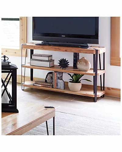 - Industrial-styled Ryegate features solid wood tops with wood veneers. These tables make a strong industrial modern statement in your living space. Each tabletop is unique; no two tops will be exactly alike. Constructed of natural acacia wood. Each of the live edge products includes nylon floor protectors. The knots and cracks add to the wood’s character. A clear natural finish enhances the beautiful features in each piece of wood..Metal straps.frame are raised on table top; not even with table surface.Solid Natural Acacia Wood.Includes nylon floor protectors.levelers.No piece is exactly alike; subtle imperfections such as knots and cracks are part of the wood’s character.Clear natural finish……