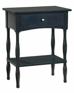 - Cottage style end table is functional and stylish. One drawer and shelf keep your room neat and organized. .A perfect end table or nightstand; versatile in any room.Turned legs provide extra detail.Easy to assemble.Bottom of the shelf to the floor is 1 3.4in; Top of the bottom shelf to the apron is 12 3.4in…….