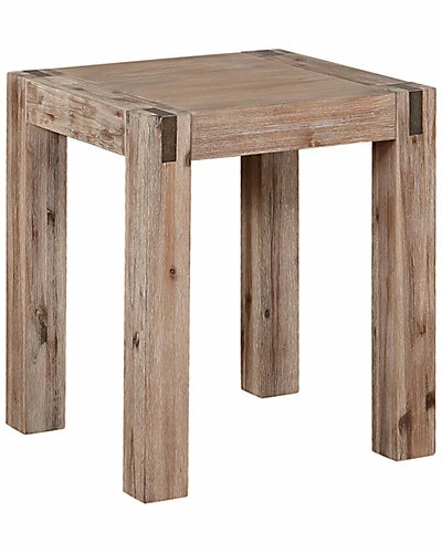 - Woodstock collection has timeless appeal; this collection has simple lines with metal inset detail. Its Brushed Driftwood finish melds easily with many decor styles. Consider this an updated classic and choose your favorite blend of accent, coffee and media tables. A bench can add extra seating or pair with coat hook for a stunning entryway statement..Woodstock table with timeless appeal; this collection has simple lines with metal inset detail .Bronze-finish metal inset on corners.Modern farmhouse appeal.Solid Acacia wood legs.Clean lines for rustic elegance.Woodstock collection of accent tables and entryway pieces…..