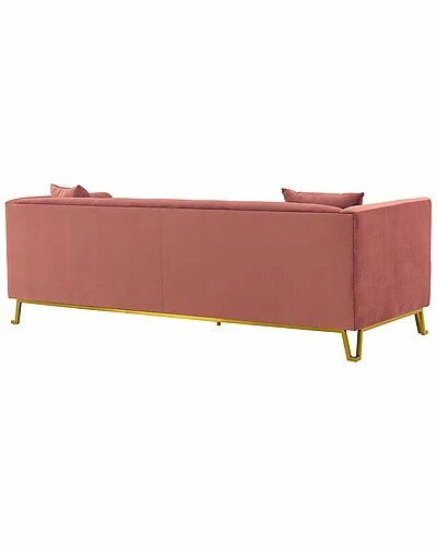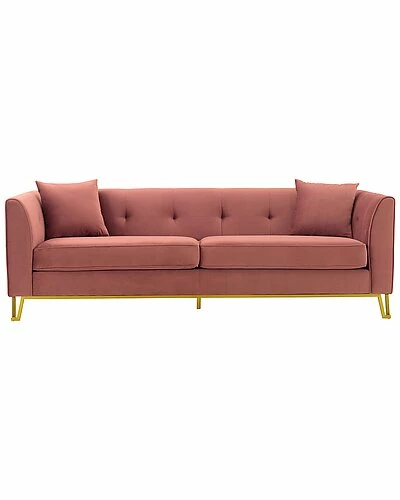 - The Armen Living Everest Sofa is the seating option your home needs right now. Capable of accommodating up to four people with its high weight capacity, the wide seat and high chair back and arms will encapsulate your body and make you feel satisfied and secure. The incredibly comfortable foam-padded cushions of the Everest Sofa will keep you relaxed all day long and make you never want to get up! The striking brushed gold legs are a stand-out feature that compliments the fabric upholstery perfectly, while also adding to the uniqueness of this sofa. This wonderful chair comes with two additional toss pillows to accessorize with. The Everest is available in your color choice of Blue, Gray, and Blush fabric.
