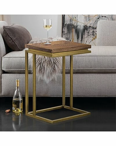 - Elevate the look and functionality of your living room with the Armen Living Faye Wooden Top End Table. Crafted of solid blend of mixed wood in a rustic woodgrain finish for a textured look, the tabletop strikes a clean-lined square silhouette with a thick top. The C-shape design create a sturdy metal base which features an open sled-style design perfect for pulling up around the arm of your favorite seat.