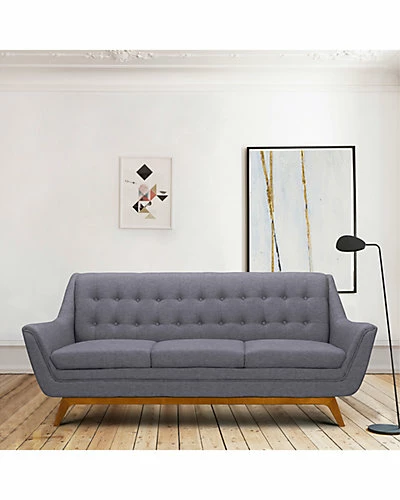 - Design details: The Armen Living Janson modern sofa is an excellent choice for any contemporary household. Featuring a durable Champagne finish, Rubber Wood frame design, the Janson assures quality without compromising on aesthetics. The Janson’s exposed wooden legs give it a mid-century quality that is further enhanced by the sofa’s tall, tufted back design. The foam padded seat cushions provide an exceptional degree of support while the angled arms add a unique stylistic twist to the piece. The Janson sofa is designed to hold up to 750 pounds and features 3 seats. Pair the Janson sofa with the matching Janson accent chair and loveseat to create a cohesive home furnishing experience. The Janson is available in 2 fabric colors; blue and dark grey.; Janson Mid-Century Sofa in Champagne Finish and Dark Grey Fabric with Rubber Wood; Tufted back includes plump foam padding, providing excellent user comfort and support; Unique exposed leg design and arm shape add originality to the otherwise traditional sofa design