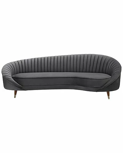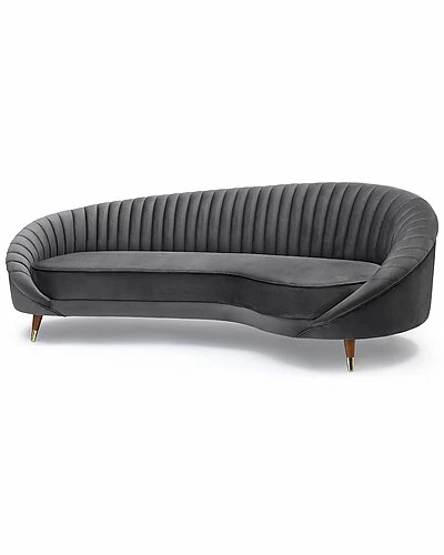 - The Karisma Curved Velvet Sofa is the epitome of modern glamor. A curved silhouette with luxurious creamy velvet on 4 tapered gold tipped legs will be sure to dazzle and blend with any decor. We know you’ll love the versatility of this sofa, and its inviting coziness. Prop it against a bold wall color for a pop that speaks for itself. The luxury sofa brings your living room a stunning look with its deep channel stitching. The Armen Living Kinsley sofa is available in your choice of dark Gray or navy velvet upholstery.