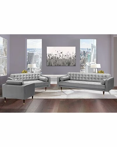 - The Armen Living Somerset Velvet Mid Century Modern Sofa set adds a touch of luxury to any home. Designed for elegant, comfortable living, this contemporary tufted set is a classic. Its generous proportions are upholstered in sumptuous velvet with luxurious tufted detail. The gold-finished caps on its tapered wooden legs add fun retro flair. The Armen Living Somerset Velvet Mid Century Modern Sofa Seating Set includes a club chair, sofa and loveseat in your choice of beautiful blush or Gray velvet upholstery.