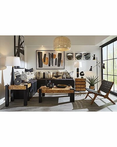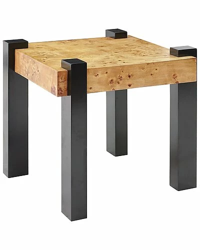 - The Bromo Accent Table has a beautiful mappa burl wood surface and solid hardwood legs in a painted finish which clamp around the tabletop, creating a dynamic geometric look. This square accent table offers a versatile surface in a living room, bedroom or seating area.