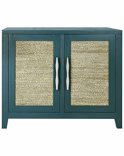 - The Joyner 2-Door Cabinet is ideal for adding texture and depth to a coastal or organic inspired room. Made from wood and accented with natural rattan insets, it comes in a painted wood finish, giving it a fresh modern look. Shelving is concealed behind two doors, making it ideal for storing household items discreetly.