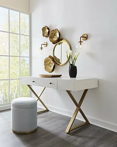 - The Raina Storage Ottoman has a drum shape and a brass metal band around its base. A small ridge at the top of the velvet upholstery reveals an inner storage area. Every room benefits from a chic velvet storage piece like this ottoman, which doubles as a side table or extra seating.