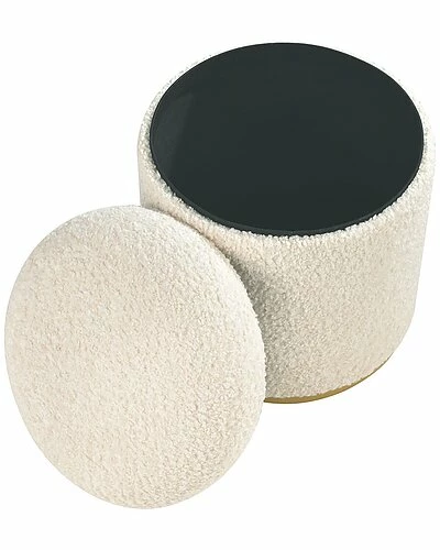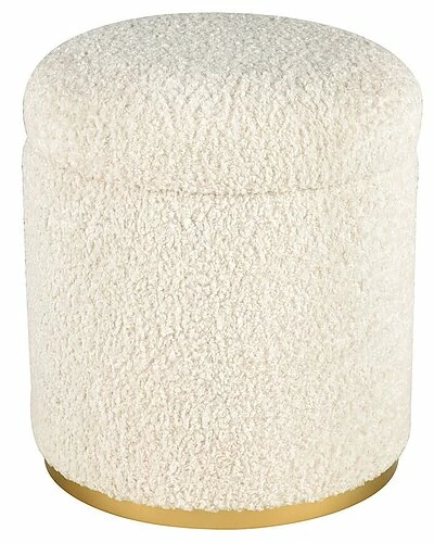 - The Raina Storage Ottoman has a drum shape and a brass metal band around its base. A small ridge at the top of the velvet upholstery reveals an inner storage area. Every room benefits from a chic velvet storage piece like this ottoman, which doubles as a side table or extra seating.