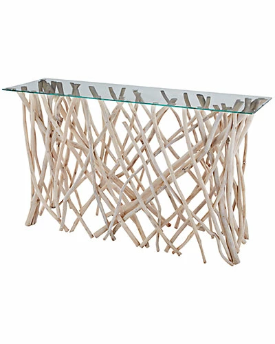 - Color/finish: natural teak, clear glass