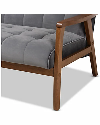 - Design details: Declare your allegiance to timelessness with the Asta living room set. Constructed from solid rubberwood, the Asta set includes one sofa and two chairs. Each piece is upholstered in a soft, sumptuous grey velvet fabric that complements the walnut brown finish on the wood. Wide, plush cushions provide ample seating comfort, while biscuit tufting and angled legs lend a cool, retro look. Stylish and versatile, this set is well suited for both private living spaces and public reception areas. The Asta living room set is made in Malaysia and requires assembly.* Sofa Measures 32.28in x 63.86in x 30.51in