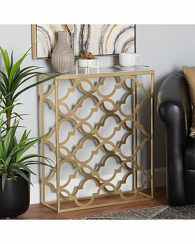 - Give your home a luxurious character with the truly dazzling design of the Calanthe console table. this stunning piece is comprised of a solid metal frame fitted with a marble tabletop. The frame features a striking quatrefoil design that exudes modern glamour while lending an open feel. The Calanthe will arrive fully assembled and features open sides that allow for extra storage space within the frame if desired. A fantastic display piece for the modern home, the Calanthe console table is sure to leave an impression. Overall Dimensions: 29.10in High x 24.00in Wide x 8.10in Deep