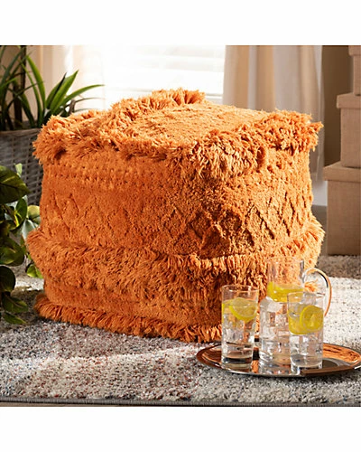 - Design details: Add a cozy, bohemian touch to any space with the Curlew pouf. Handwoven from a soft, fleece-like cotton, the Curlew features a vibrant orange hue. Its rich mix of textures adds interest to even the simplest spaces. This versatile piece can be used as a seat, footstool, or casual coffee table. Made in India.