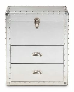 - Design details: Bring chic industrial style into your space with the Serge chest. Constructed from metal, the Serge features a unique lift-top compartment with ample storage space. Two drawers provide additional space to keep items organized. Polished silver metal drawer handles add a sleek touch. Inspired by vintage storage trunks, the Serge is embellished with rivets and corner protectors. This chest is well suited for a living room, bedroom, or entryway. The Serge chest is made in China and will arrive fully assembled.