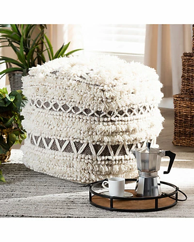 - Design details: Add a cozy, bohemian touch to any space with the Vesey pouf. Handwoven from wool and cotton, the Vesey features a chic blend of beige and brown hues. A melange of fringe and braiding lends vibrant texture. This versatile piece can be used as a seat, footstool, or casual coffee table. Made in India.