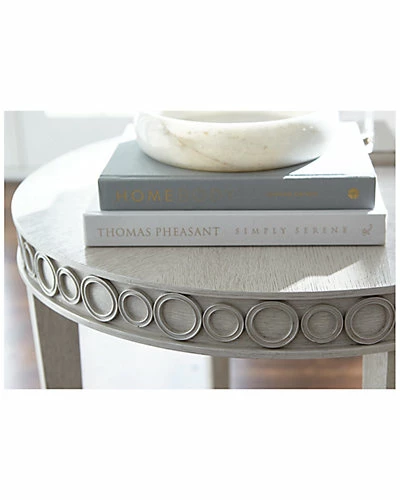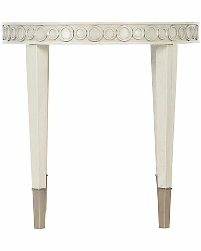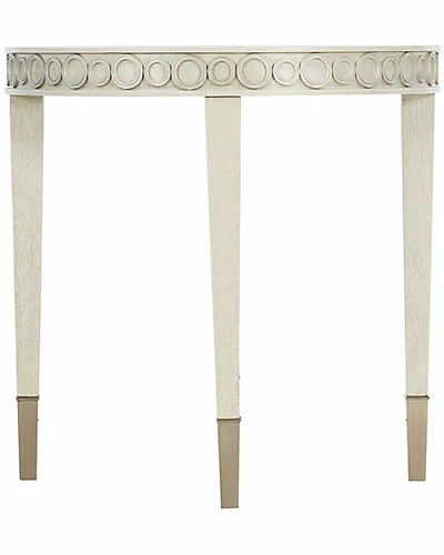 - Design details: Fancy face top with pattern of alternating sized circles on apron with silver accents in Silver Luster finish. Metal ferrules. Adjustable glides.