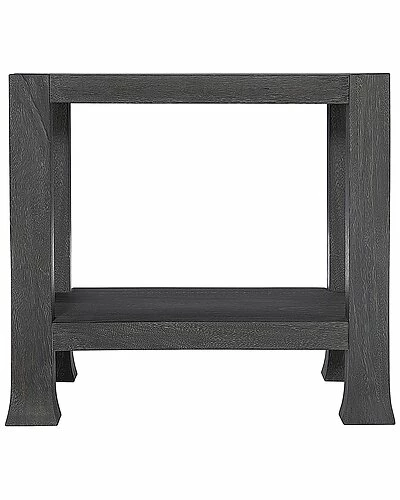 - Carbonized Suar wood. Planked design top and shelf. Adjustable glides.