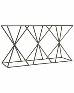 - Rectangular iron console table and stretchers with lightly hammered texture and New Aged Bronze finish, with inset tempered glass top. Small adjustable glides. Anti-tip kit and instruction sheet.