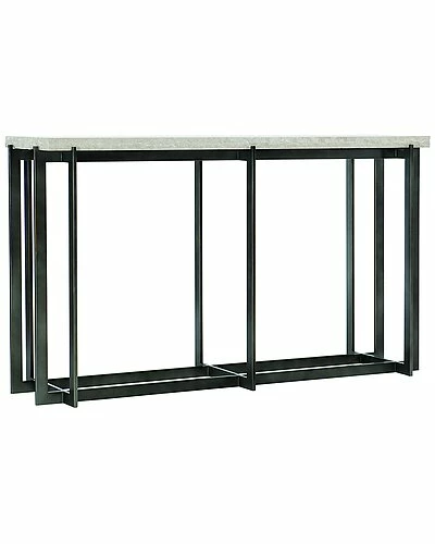 - Laminated White Travertine stone top. Tubular steel base in oil-rubbed Bronze finish. Adjustable glides.