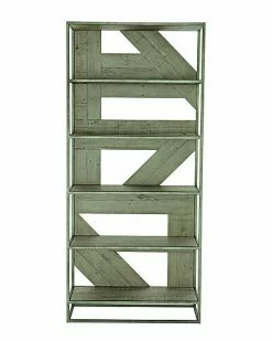 - Tubular Steel frame in Glazed Silver finish. Planked wood top and five shelves in Morel finish. Back panel consists of both open areas and planked solids in Morel finish. Adjustable glides. Anti-tip kit.