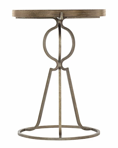 - Design details: Round inset wood top. Open cast iron base in Burnished Silver finish. Adjustable glides.