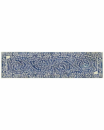 - Design details: This classically designed bench will be a delight in any entryway or bedroom. With a botanic motif bone inlay over a blue background this bench will be a treasured piece for any user.