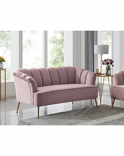 - The Alicia is a comfortable, trendy love seat that makes a bold and updated reference to mid-century modern design. A sight to behold, the Alicia love seat features a vertical channel tufted back and shelter arms upholstered in luxurious, tufted velvet, all atop flared gold tone solid metal legs. Works great as a standalone piece or pairs beautifully with the Alicia sofa and/or club chair. Lends itself to living room, lounge, den and office spaces with modern and contemporary design styles.