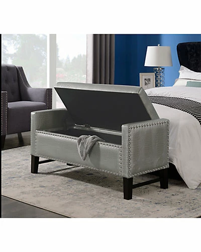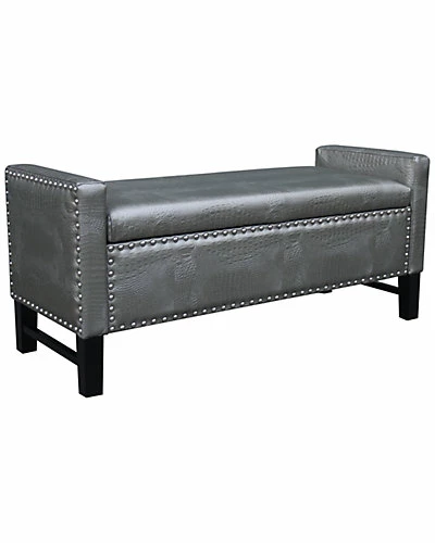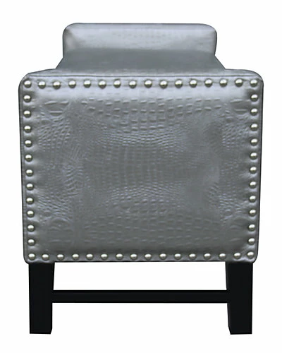 - Design details: PU leather, foam, birch, and plywood construction; hidden storage capacity, oversized polished nickel nail heads
